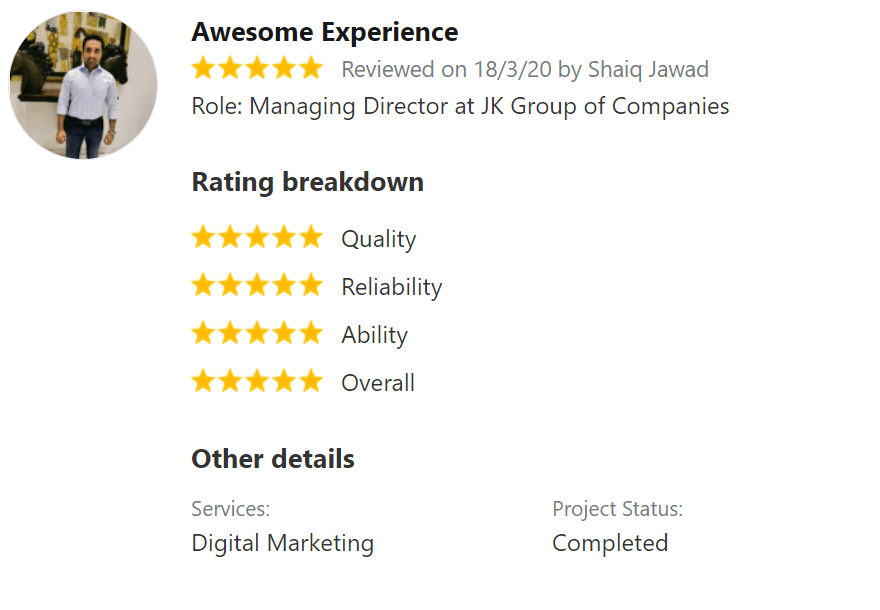 One of the client’s have shared their valuable feedback on digital marketing services by ePromoters with five star rating.